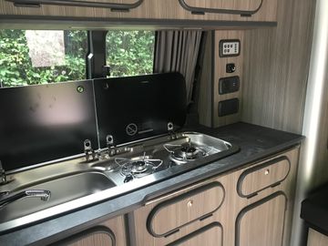 Small sink and hob unit great for cooking and the washing up in with out taking up loads of spaces