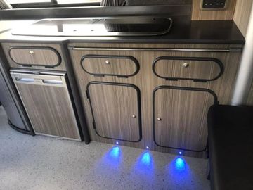 the dometic crx 50 are a great 12v compacted fridge freezer that run on little Wattage but still keep everything very cold and frozen.sergeant electric unit is all in one power unite with the 12 volt system , the 240v power and charger is nice and compact too save on spaces and has a led control panel to turn the power on or off tells you the level of the battery switch from vehicle battery too leisure and the water pump on